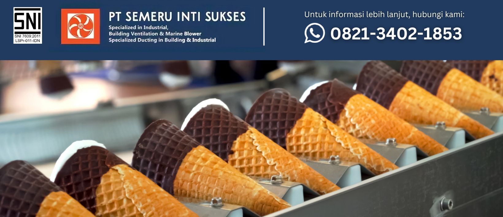 Jika Anda membutuhkan solusi kipas industri, exhaust fan, atau sistem ventilasi yang tepat untuk pabrik es krim dan fasilitas industri lainnya, jangan ragu untuk menghubungi kami melalui WhatsApp 082134021853. Anda juga dapat menemukan produk resmi kami melalui Official Store di SHOPEE dan TOKOPEDIA untuk mendapatkan solusi ventilasi industri yang andal dan sesuai kebutuhan bisnis Anda.